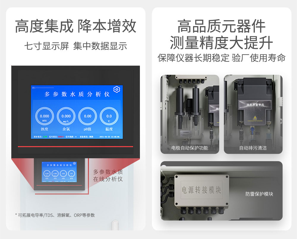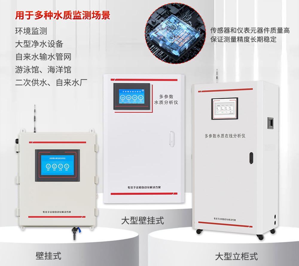多参数水质在线分析仪是新一代饮用水水质监测设备,该设备可广泛用于城市或村镇自来水厂、自来水输水管网、自来水二次供水、用户末梢、室内游泳池、大型净水设备和直饮水等水质在线监测,是水厂生产过程控制、水利水务管理、卫生监督等领域必不可少的在线分析设备。