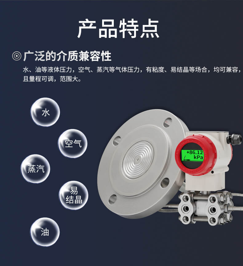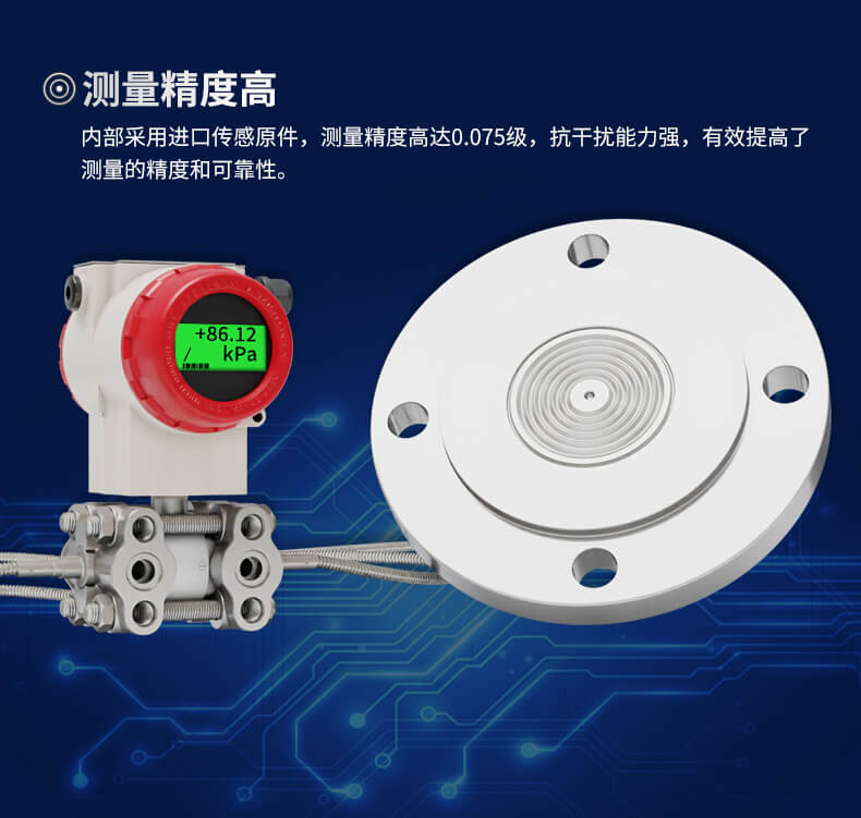 5500jcjc线路检测MIK-3051DP双法兰液位变送器产品利用差动电容检测原理,当两侧压力不一致时,致使容室中测量膜片产生位移,其位移量与压力差成正比,通过电路处理将电容变化量转换成4~20mA的二线制电流信号输送给二次仪表显示液位值